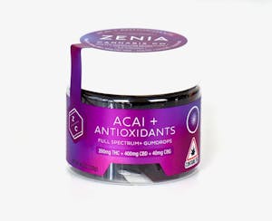 - Gummies | SativaZenia Cannabis CoAcai + Antioxidants - THC+CBD+CBG - 200mg:200mg:40mg200mg THC400mg CBD$28.00each