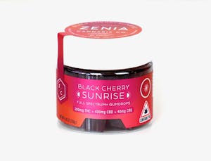 - Gummies | SativaZenia Cannabis CoBlack Cherry Sunrise - THC+CBD+CBG - 200mg:200mg:40mg200mg THC200mg CBD$28.00each